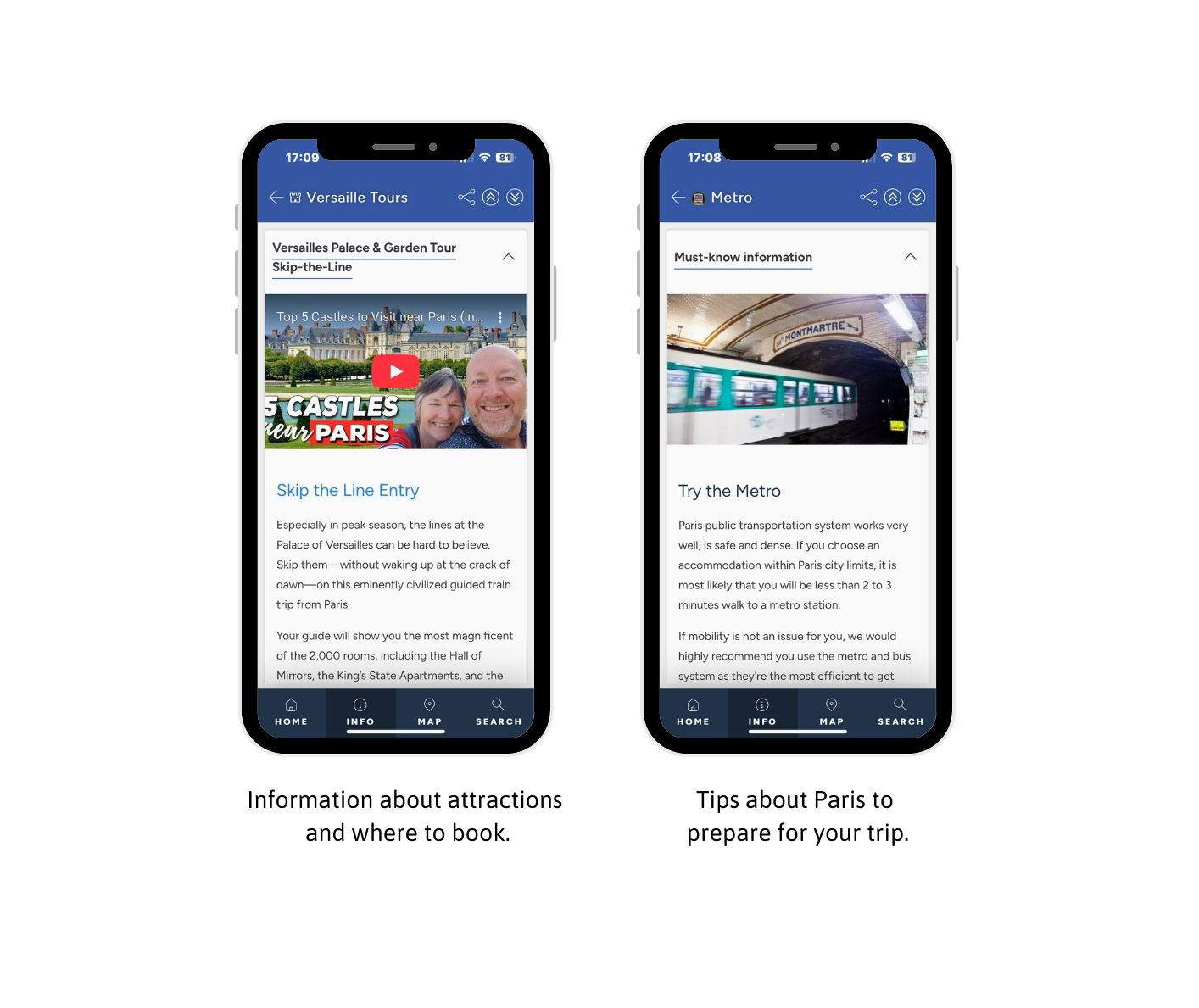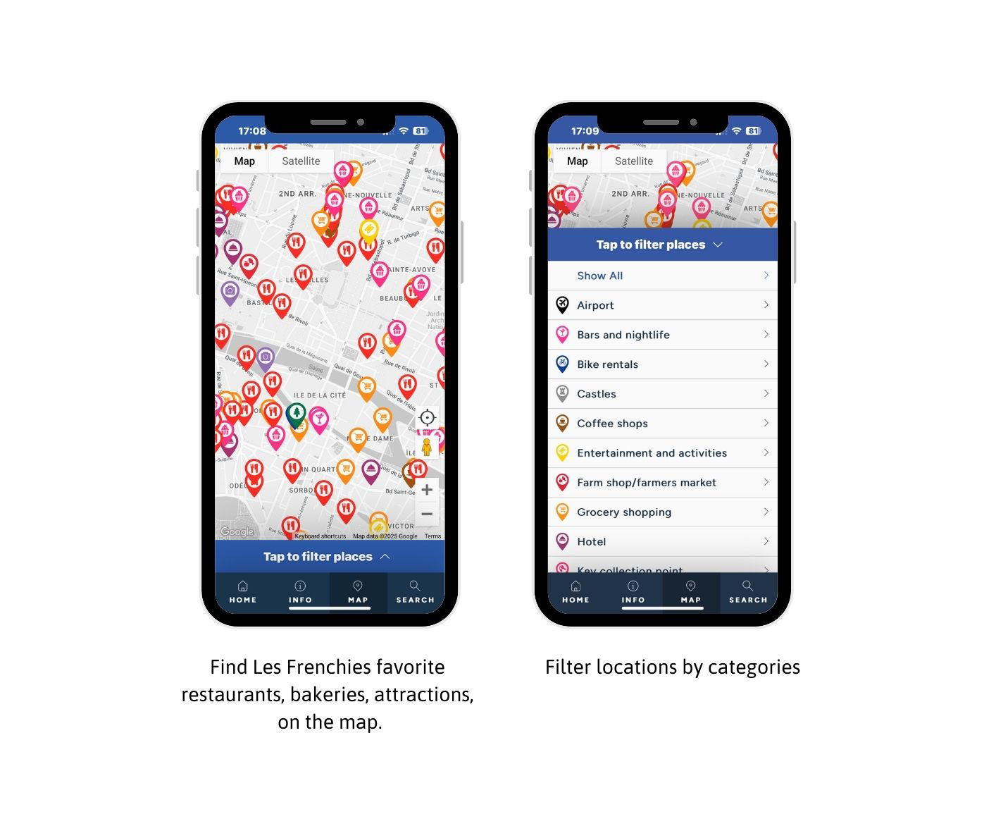 - App: The Les Frenchies App is accessible through the browser of your phone, tablet and computer. It includes all Les Frenchies tips and an interactive map to help you plan and enjoy your trip in Paris.